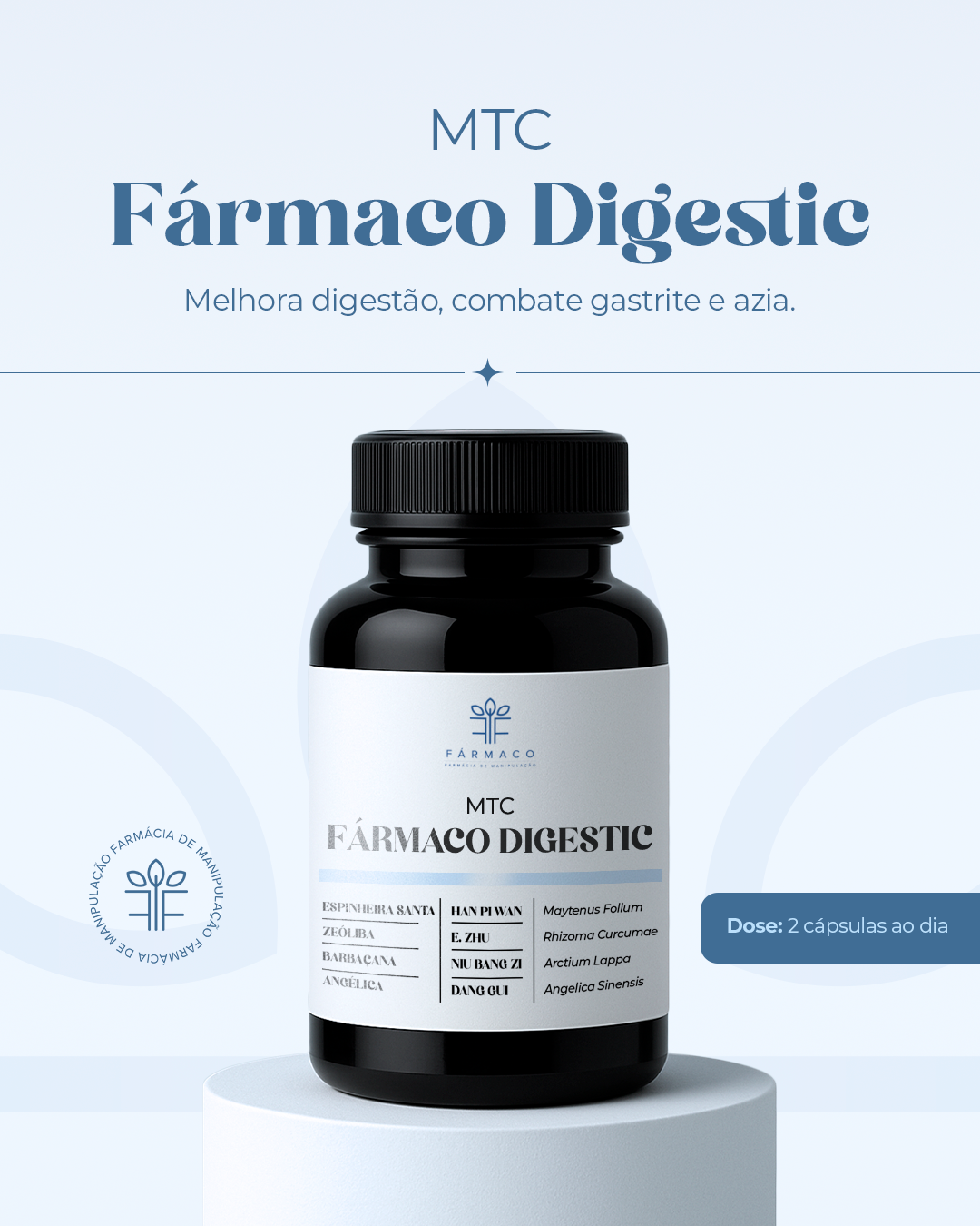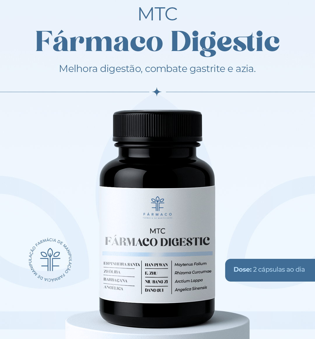 Se você sofre com azia, gastrite, refluxo ou aquela sensação constante de estômago pesado, o Fármaco Digestic é o seu novo aliado natural. Uma fórmula exclusiva que une o melhor da fitoterapia tradicional brasileira com ativos da medicina oriental para restaurar o equilíbrio gástrico, reduzir inflamações e melhorar sua digestão de forma contínua e segura.